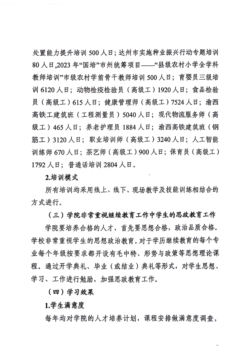达州职业技术学院2023年度高等继续教育 发展情况的报告